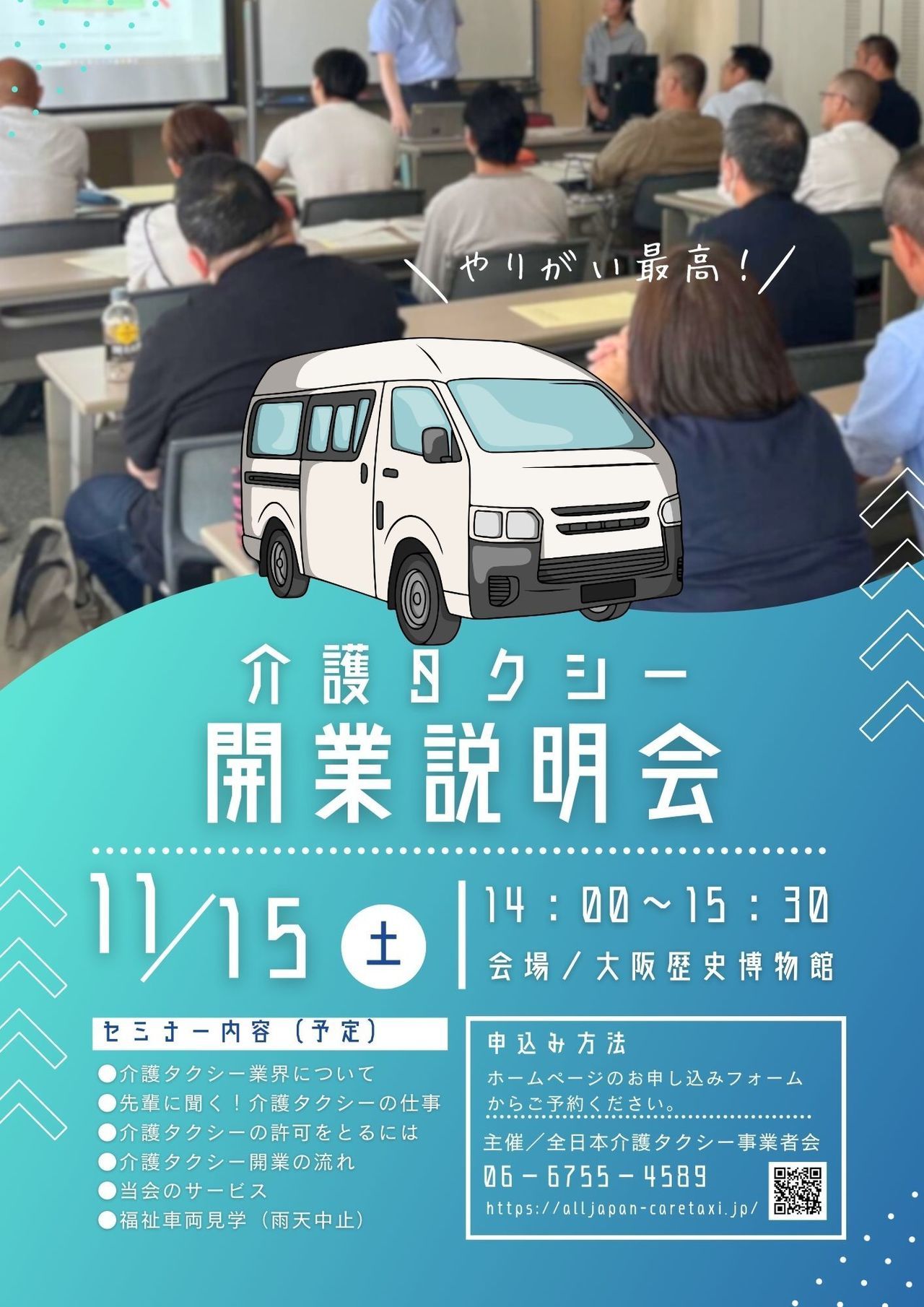 11月に全日本介護タクシー事業者会にて「介護タクシー開業説明会」を開催します!